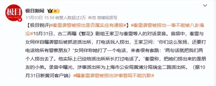 很快,权威官媒纷纷下场,对此事进行点名批评,文章措辞严厉地指出,“秦雯袭警被捞出”是否属实应当有明确通报,此事不应被当作八卦谈资淹没在舆论的浪潮里。